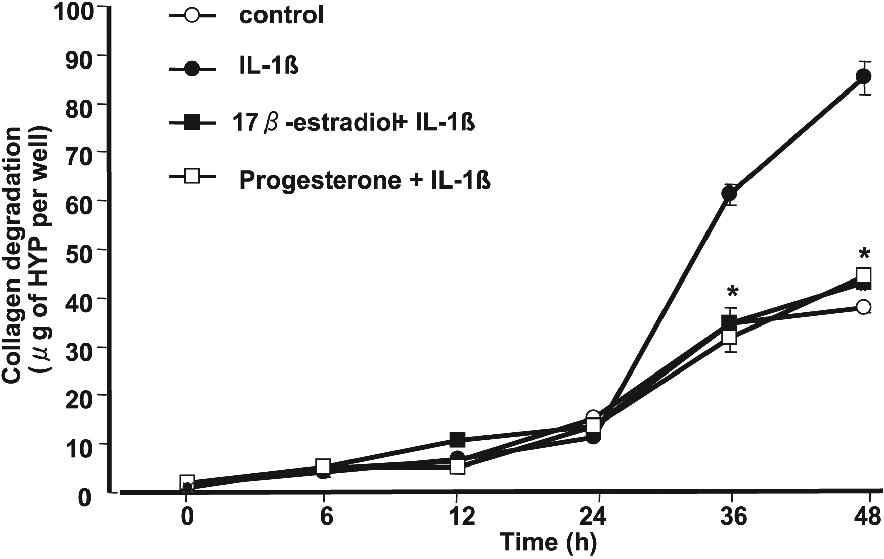 test) for cells incubated with IL-1β plus 17β-estradiol or
