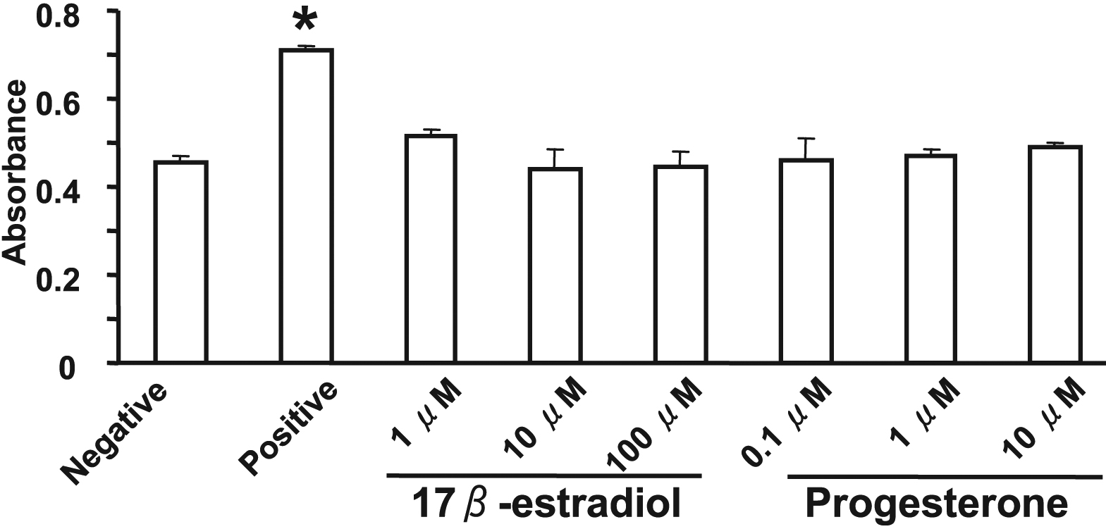 of 17β-estradiol or progesterone or of 10% FBS (positive