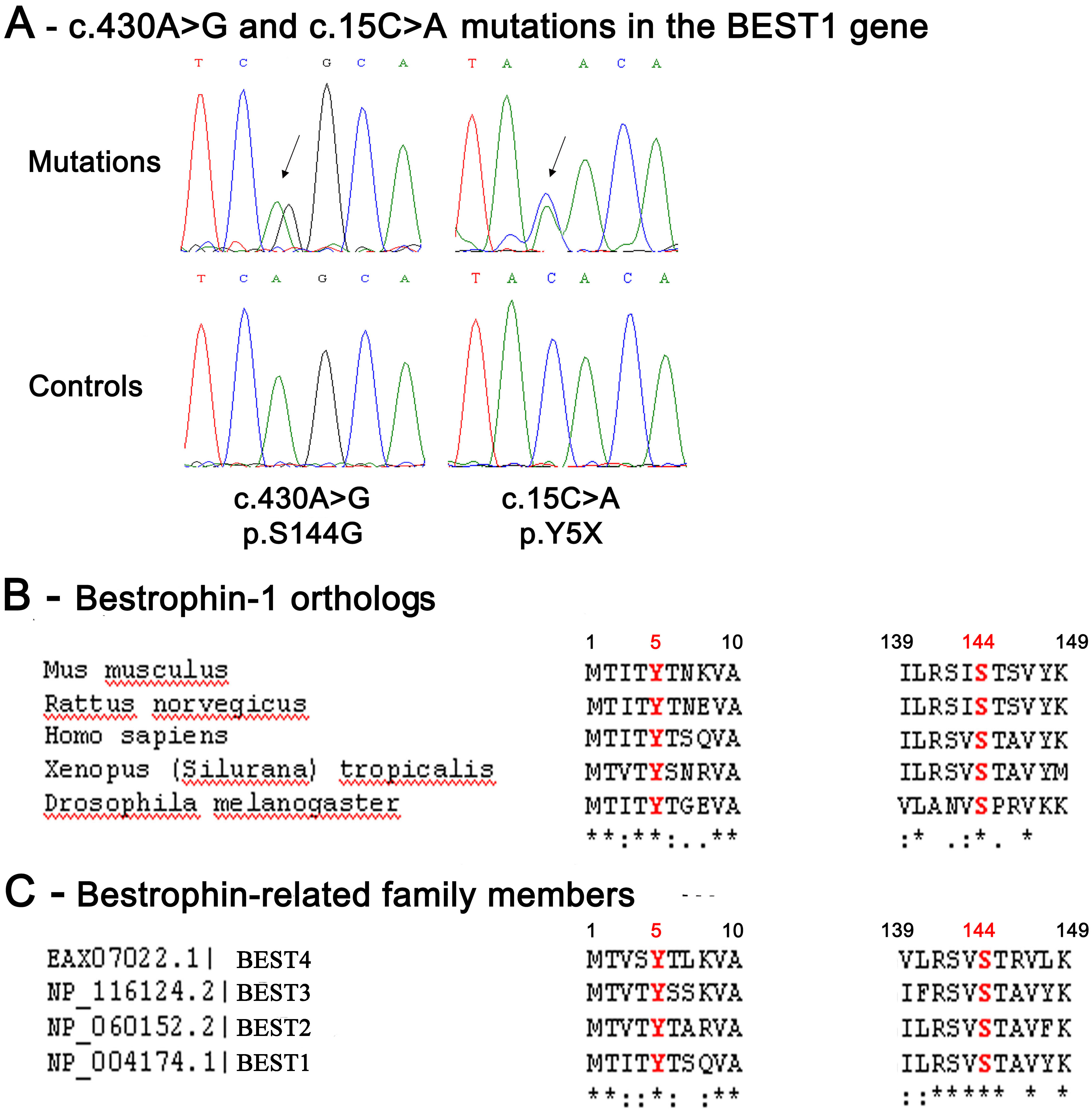 throughout evolution of the amino-acid residues of the normal BEST-1