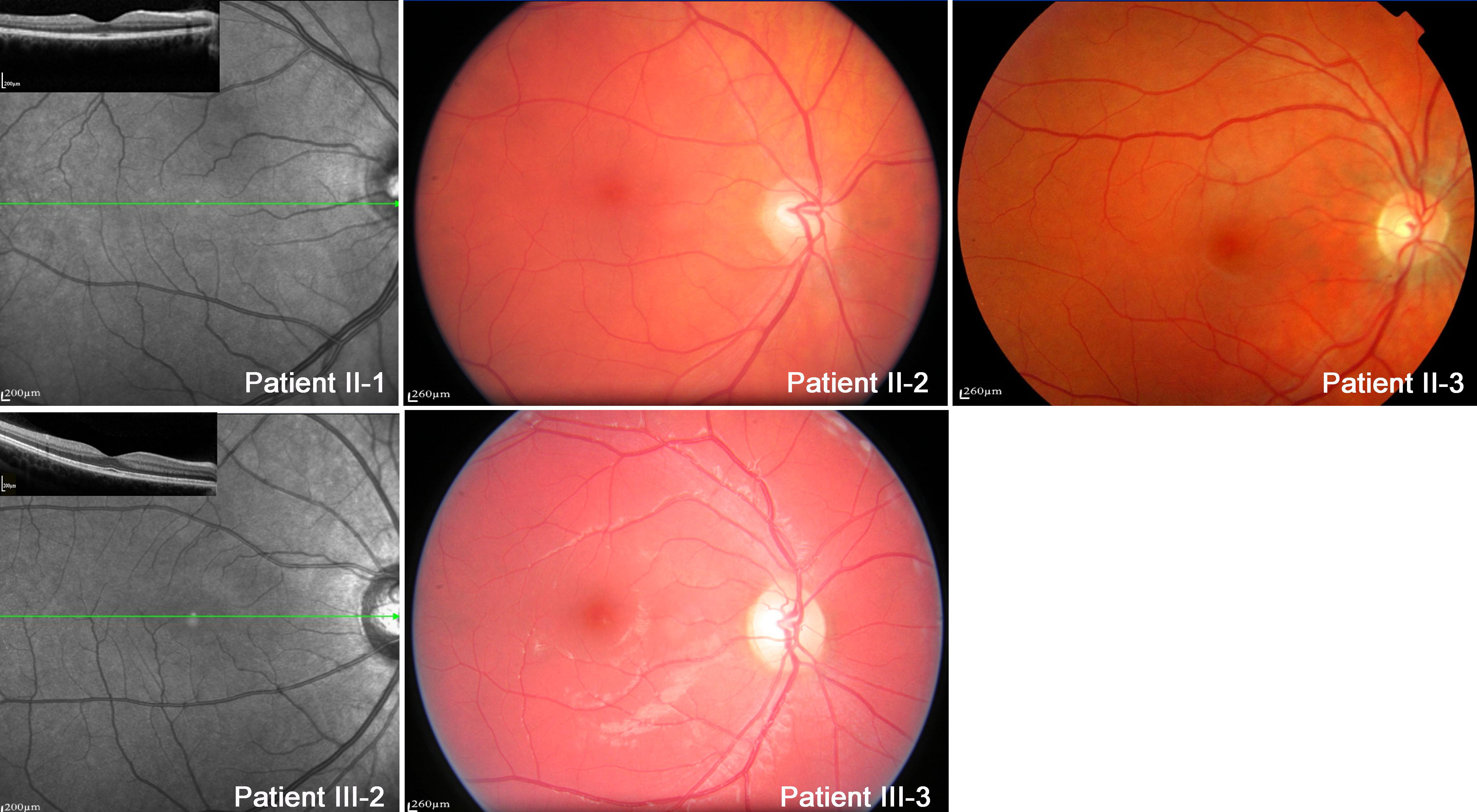 fundus/optical coherence tomography scans in patients II-1, II-2, II-3,