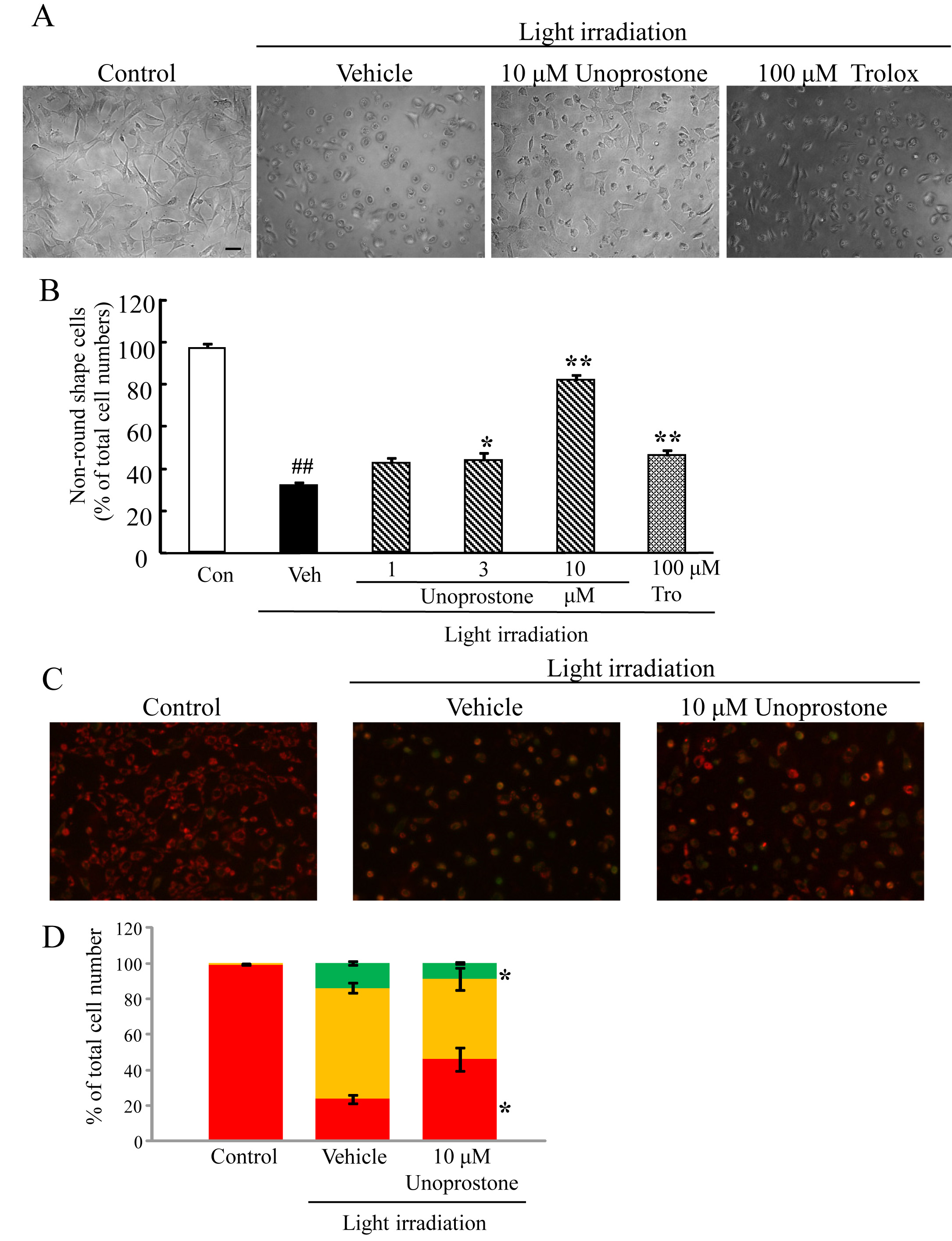 before light irradiation. B: Unoprostone (1–10 µM) was