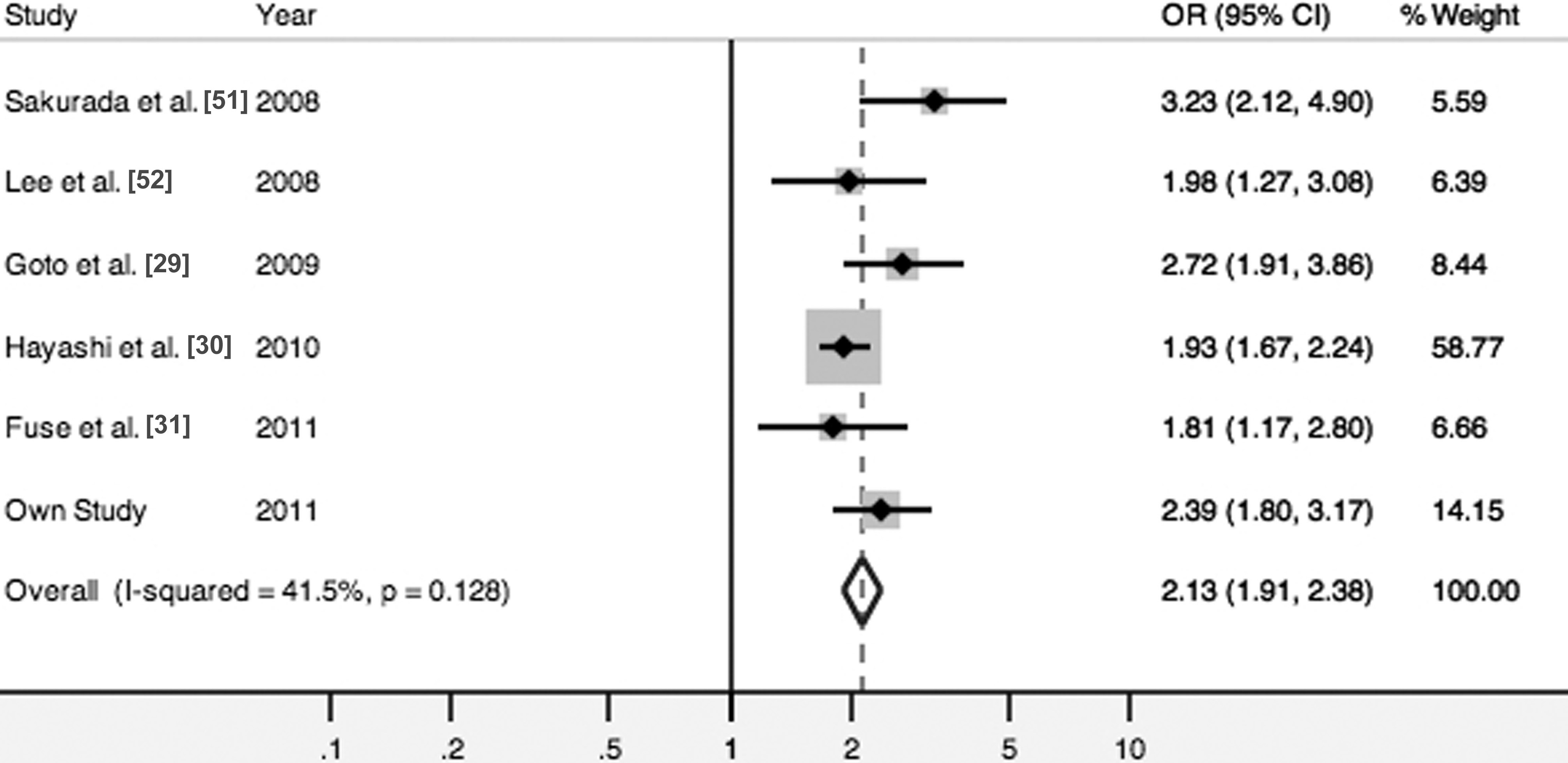 vasculopathy. Odds ratios (black squares) and 95% confidence