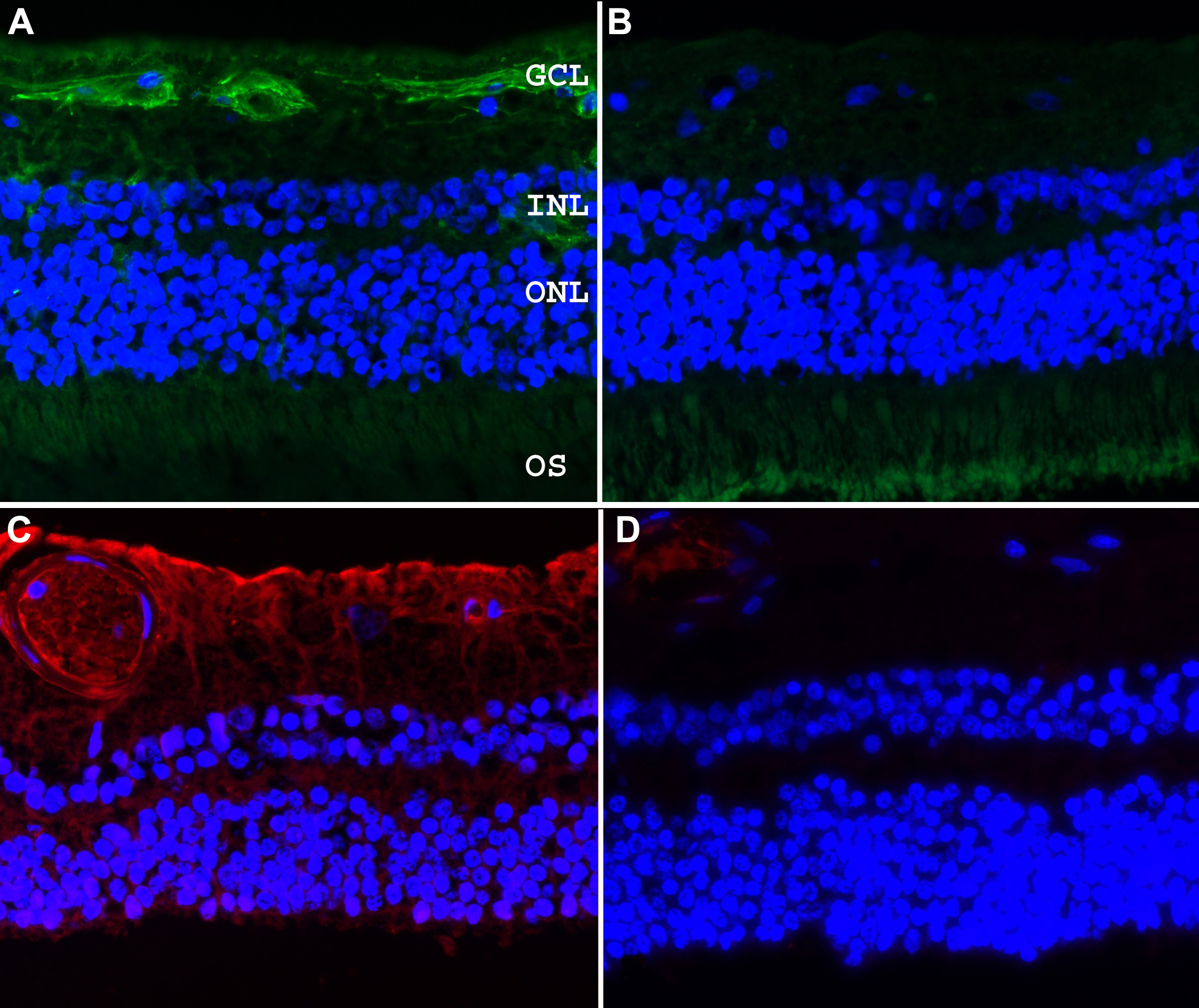 only minor cross reactivity of the secondary antibodies. GCL=ganglion