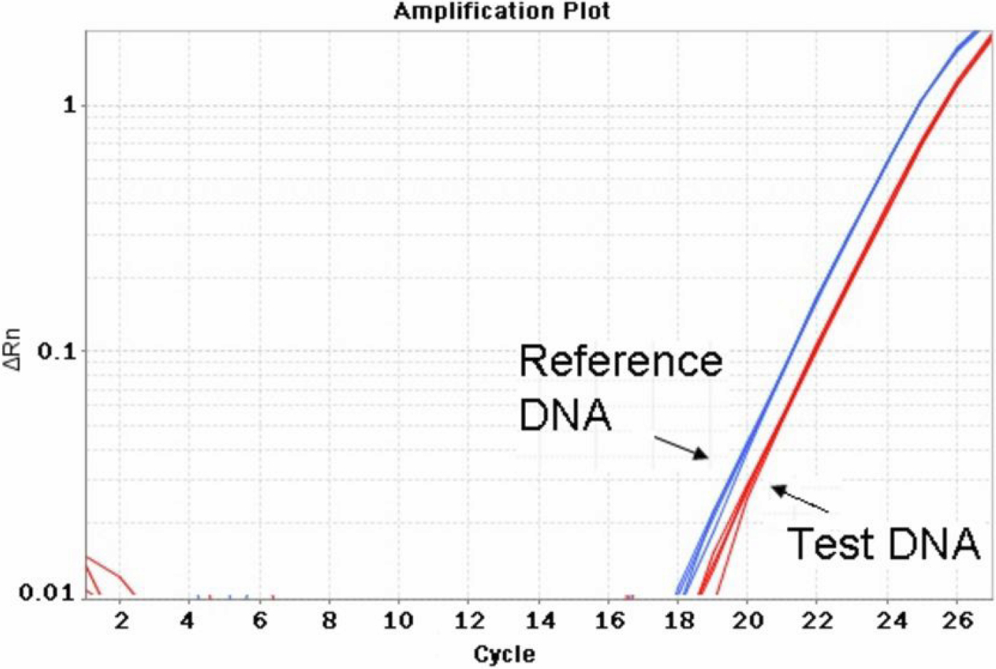 qPCR analysis result. An example of the qPCR amplification plot showed a single copy of the test gene,