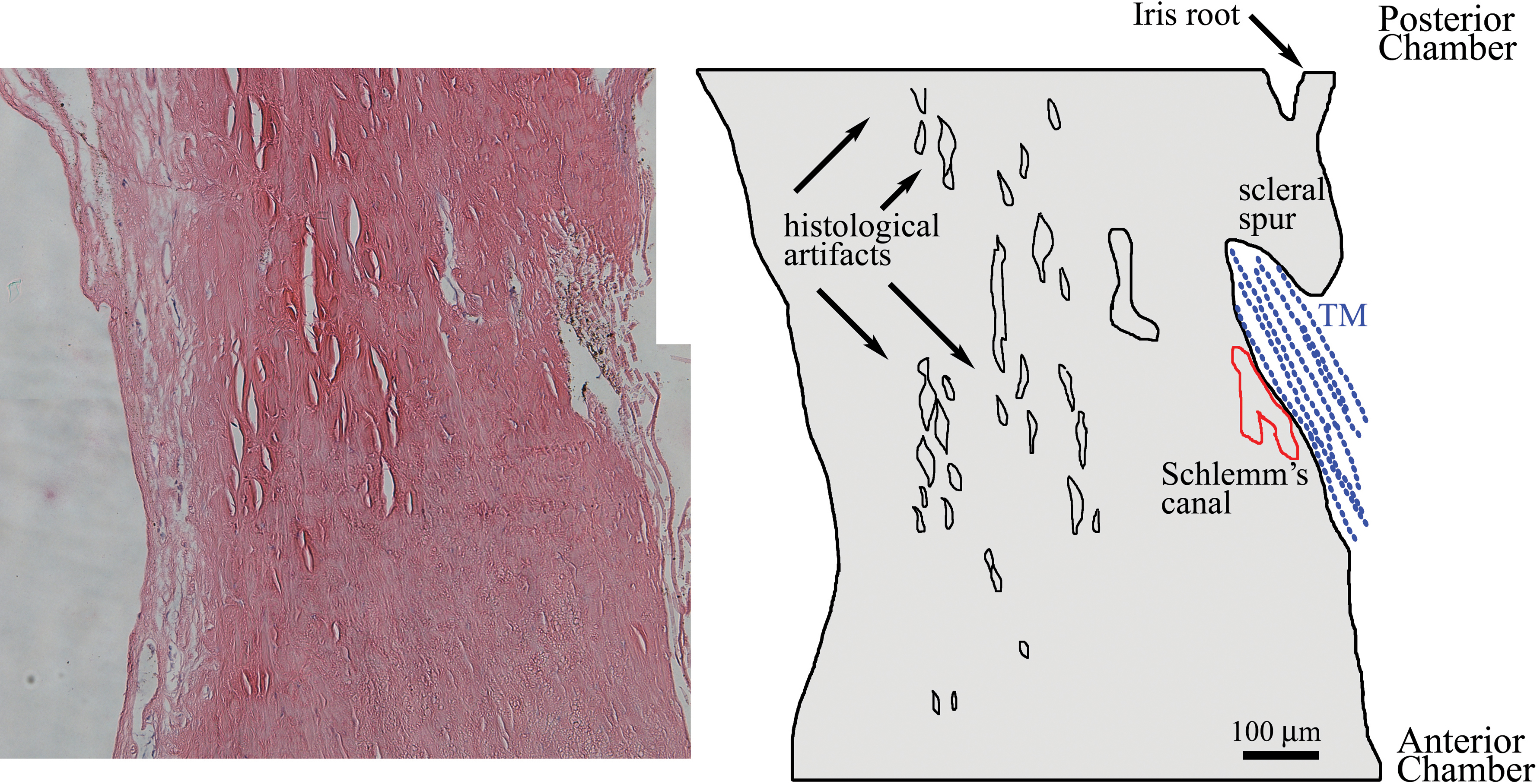 fibrous tissue region of the eye. Schlemm’s canal is visible proximal