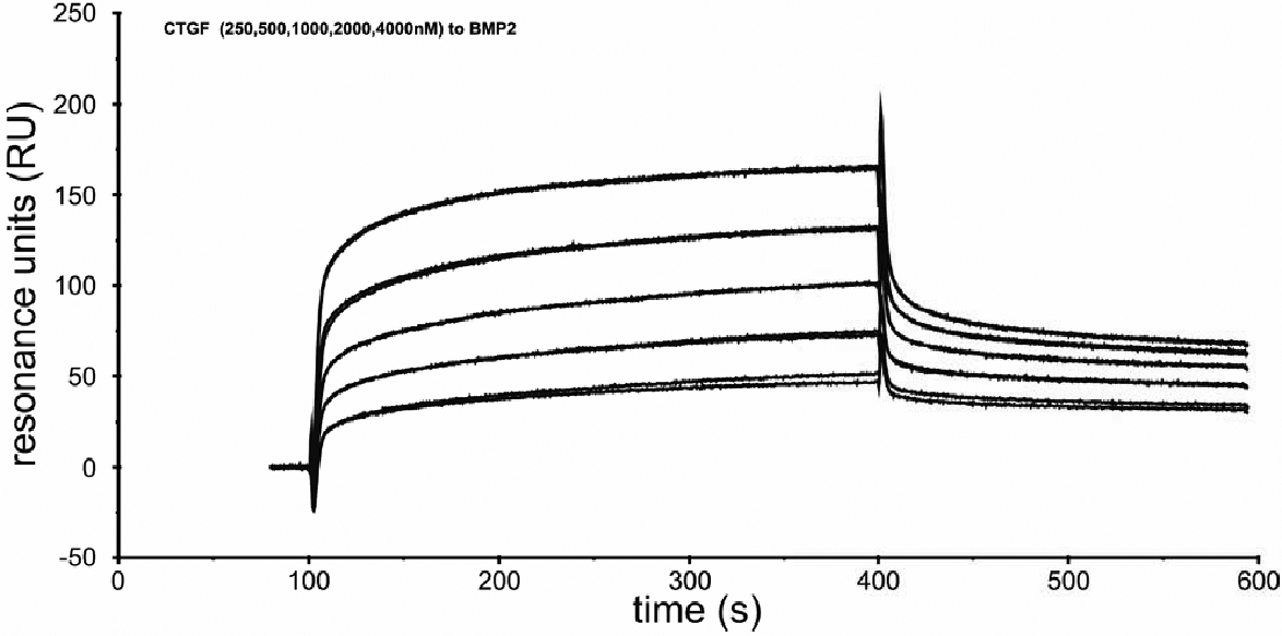 binding of hCTGF to immobilized BMP-2 reveals an apparent KD value of ~400 nM.