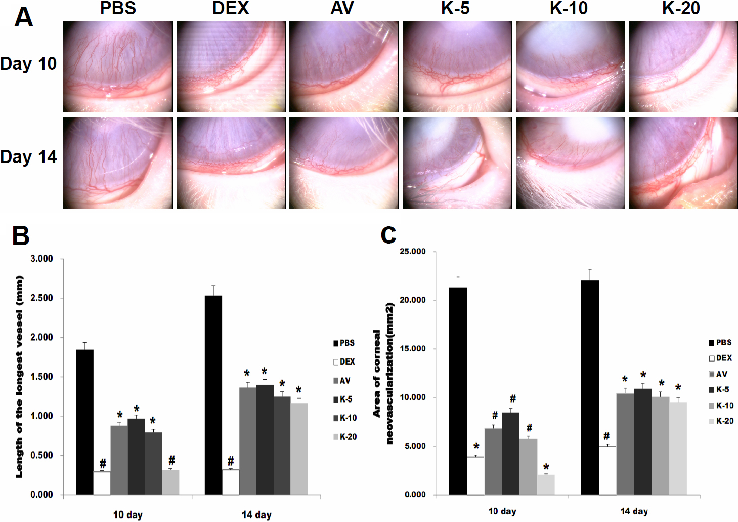 vessel. PBS: PBS, DEX: dexamethasone, AV: Avastin, K-5:KH906 (5 mg/ml),