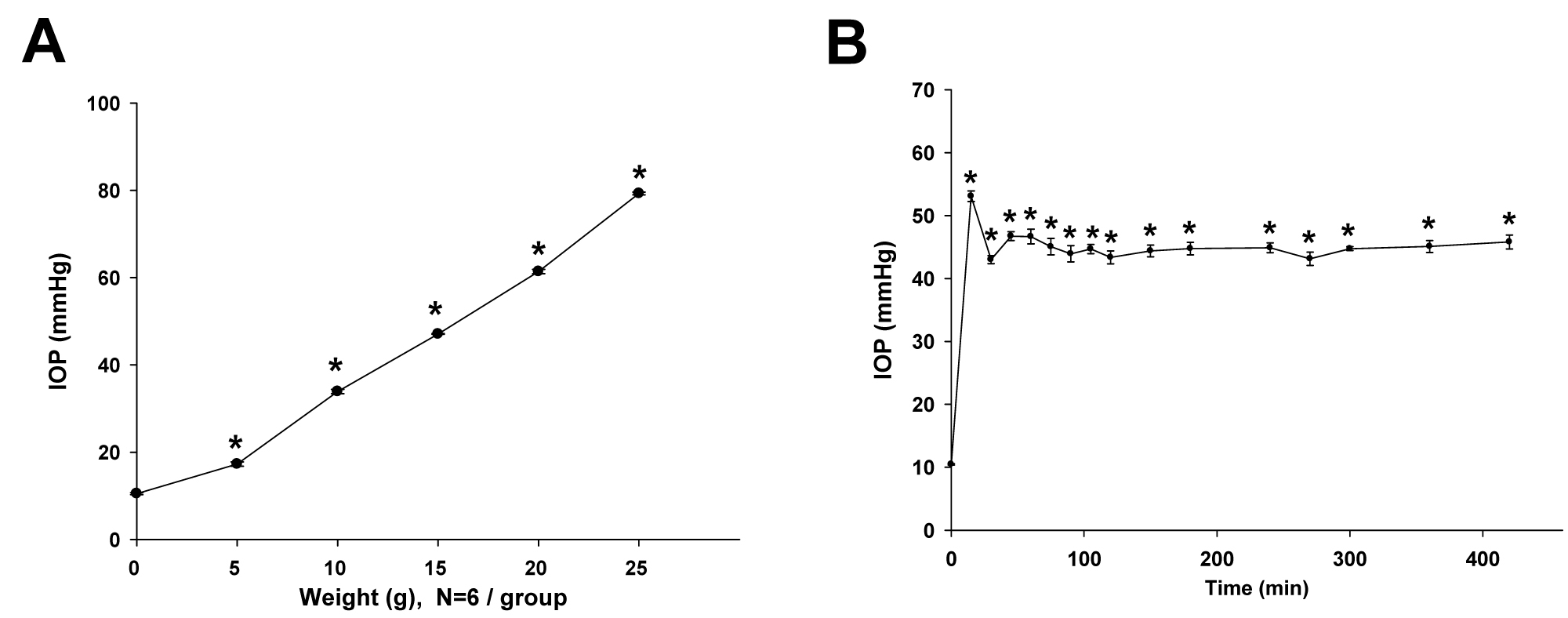 weight on rat IOP. The weight was applied starting at Time 0 and was