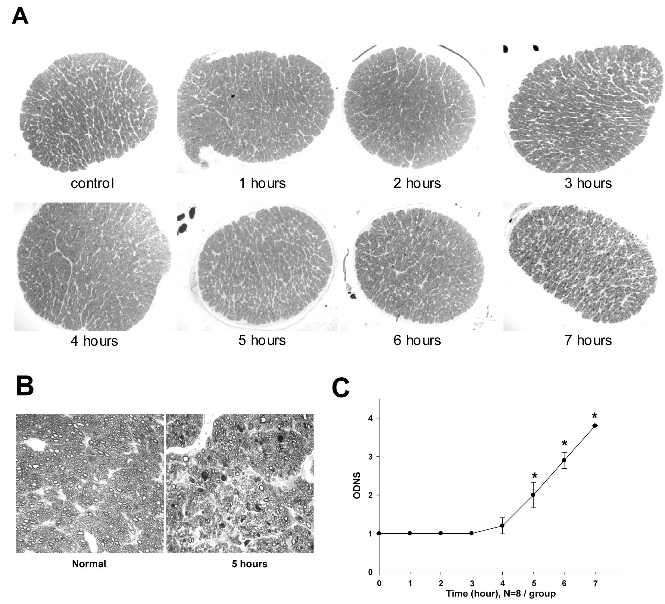 changes of rat optic nerves (ONs) induced by ocular hypertension