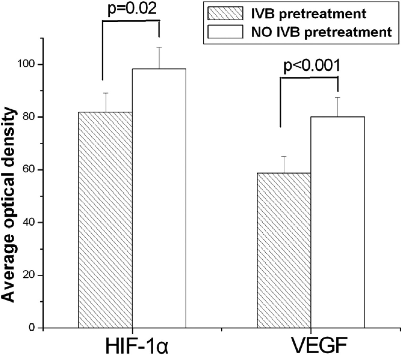 levels of both HIF-1α (p=0.02) and VEGF (p<0.001) in the IVB