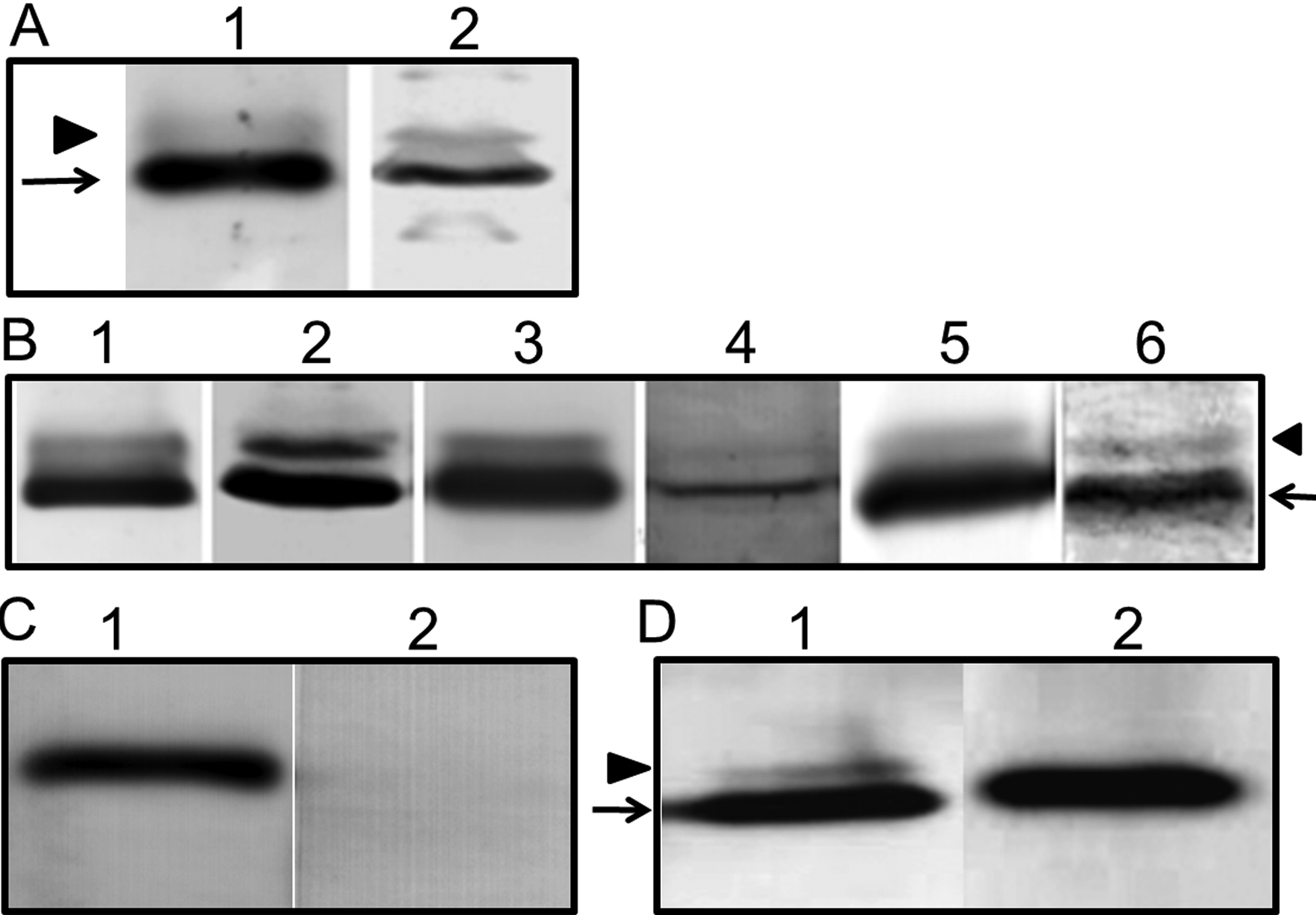 untreated proteins (arrow - ~28 kDa; arrowhead -