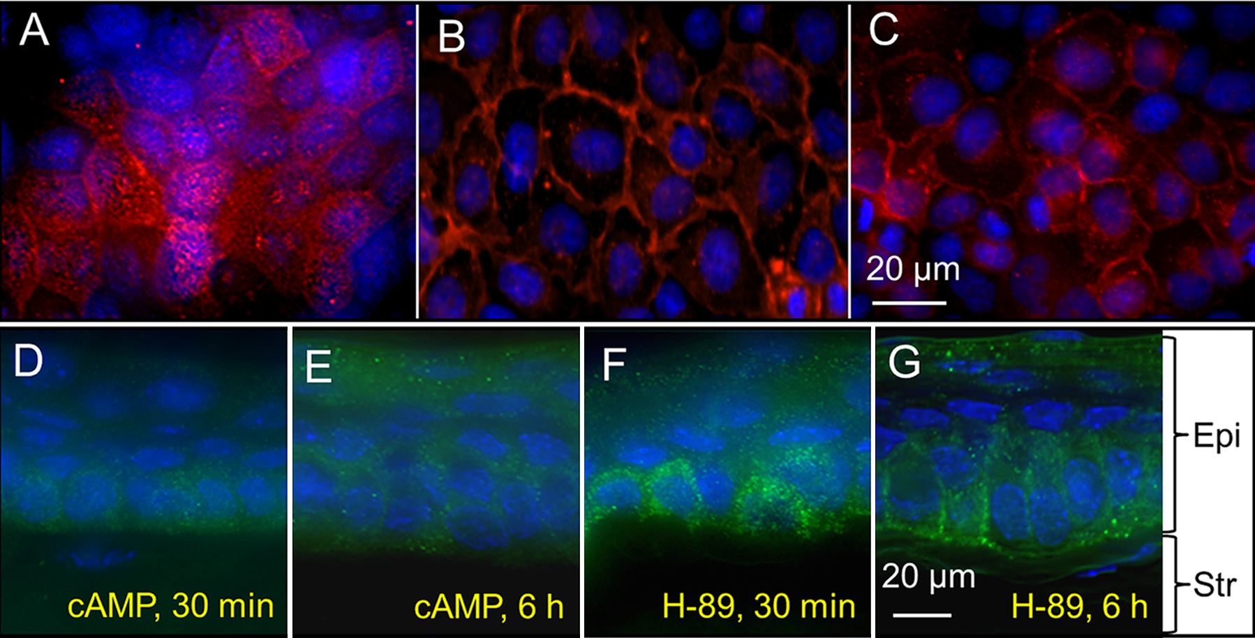 cells expressing AQP5 were exposed to: mp-cAMP (A); H-89