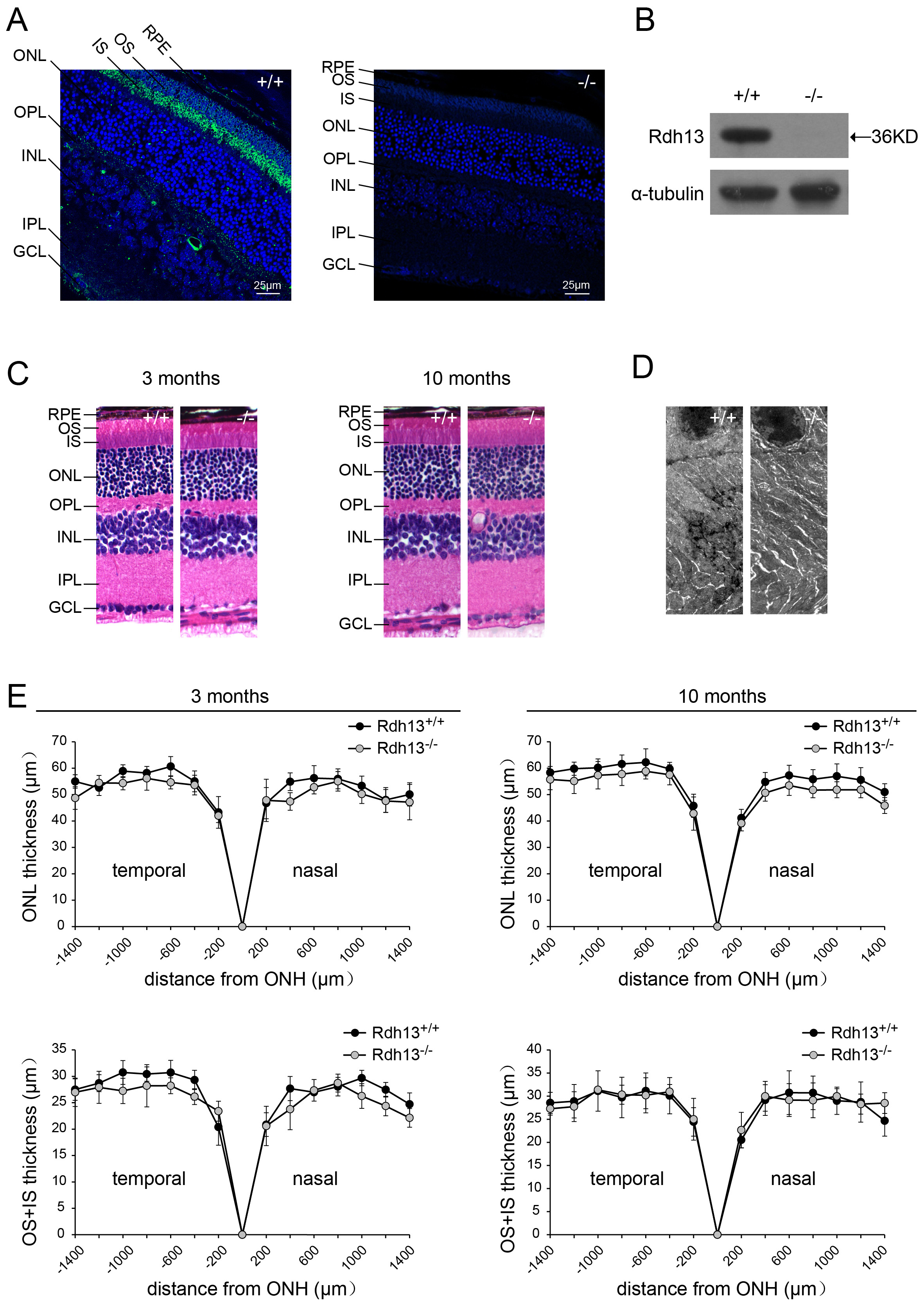 knockout mice. A: Immunofluorescence localization of Rdh13