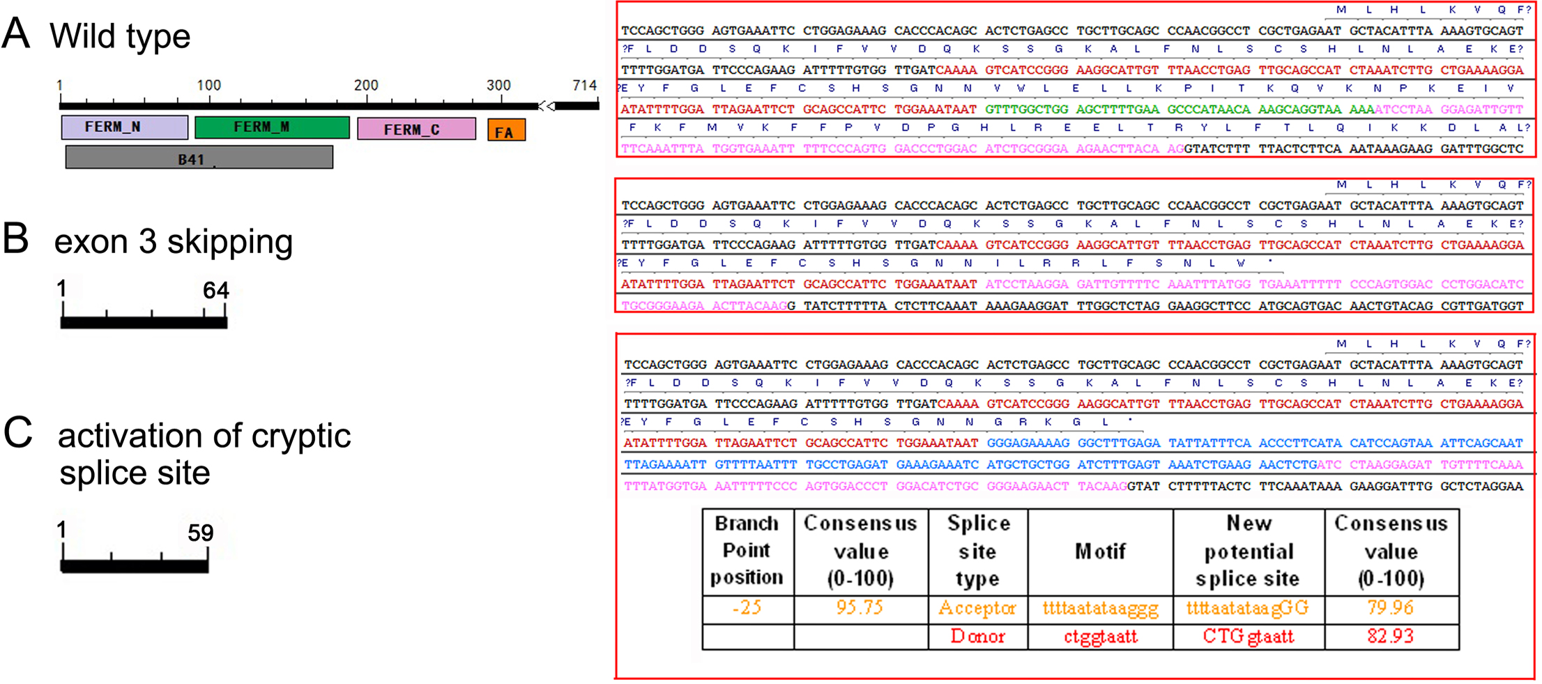 possible consequence from the c.163–1G→T transversion in FRMD7.