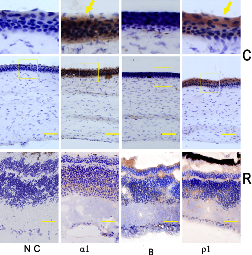 (ρ1) receptor protein distribution in chick cornea (C) and