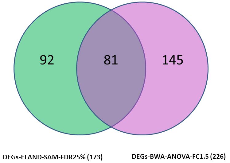 Figure 1. Differentially expressed gene sets were obtained by employing either significance of microarray analysis algorithm or ANOVA