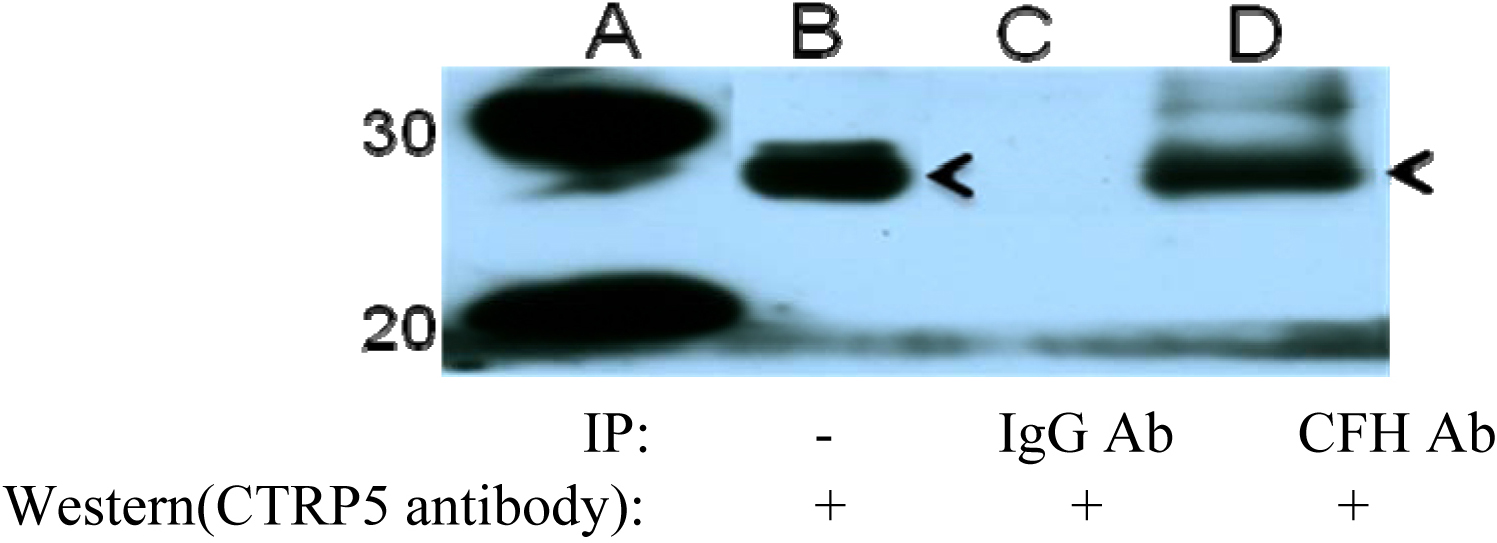 and the western blot with the hCTRP5 antibody; lane D is the IP