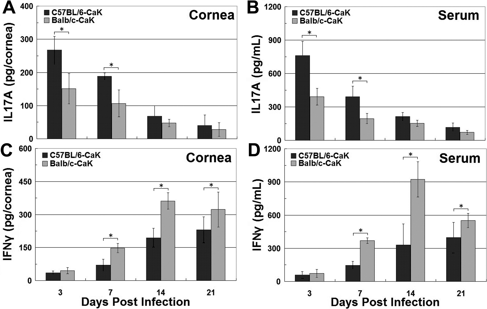 corneas. D: IFNγ concentrations in serum.* p<0.05
