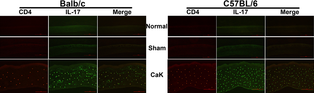 were stained routinely for interleukin (IL)17 (green) and CD4