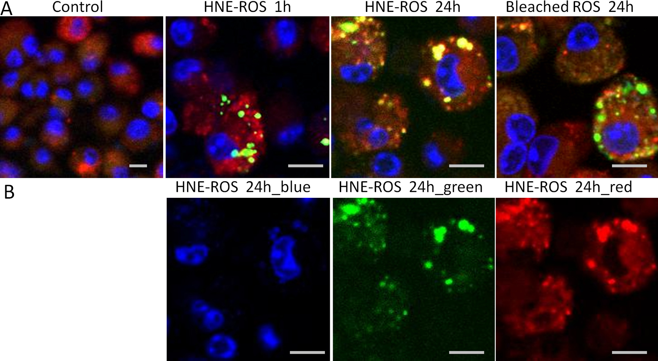 the cells fed with HNE-modified ROSs at 24 h. Scale bar=10 μm.