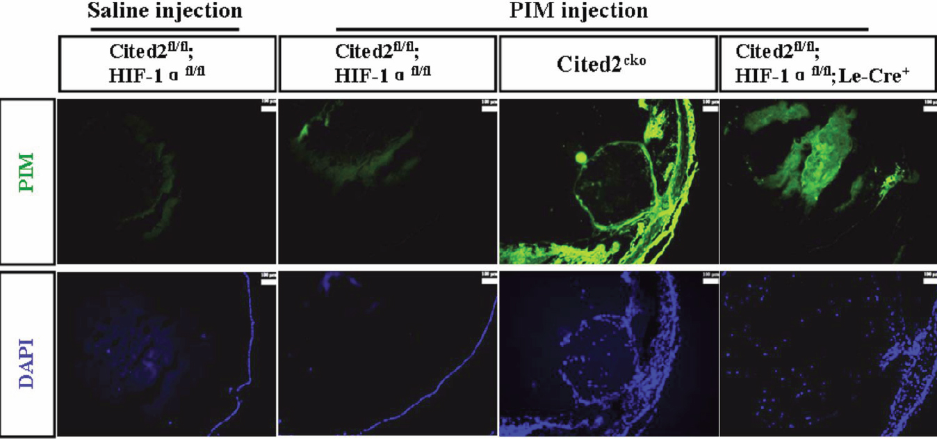 antibodies against PIM. PIM signal (Green) was strong in Cited2CKO