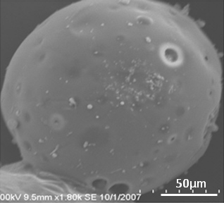 Figure 2. This figure shows the scanning electron microscope picture of a Poly(D,L-lactide-co-glycolide) (PLGA) scaffold microparticle