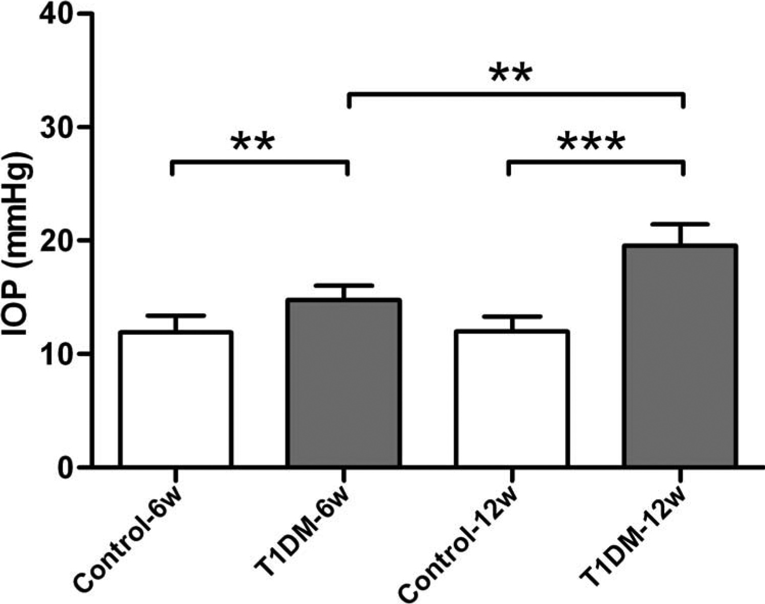 significantly increased IOP (n=8/group, ** indicates p<0.01,