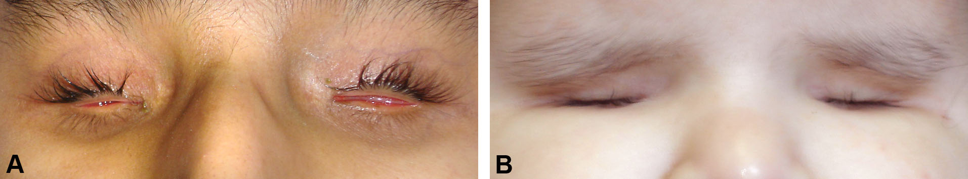 anophthalmic patients. A: Family A: Patient IV:1 at 16