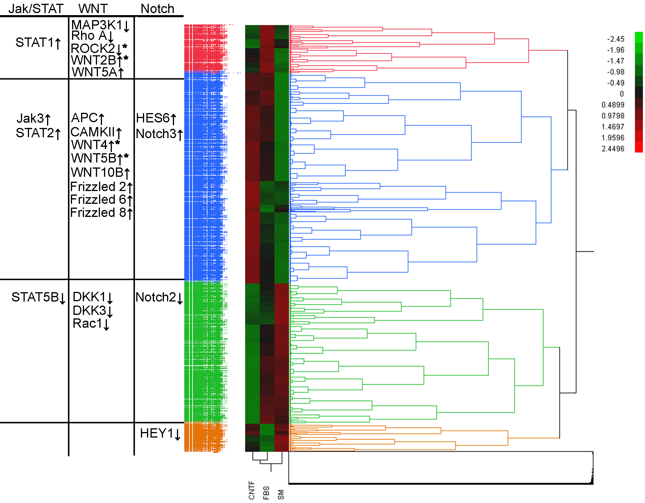 from the Jak/STAT, Wnt, and Notch pathways are shown relative to