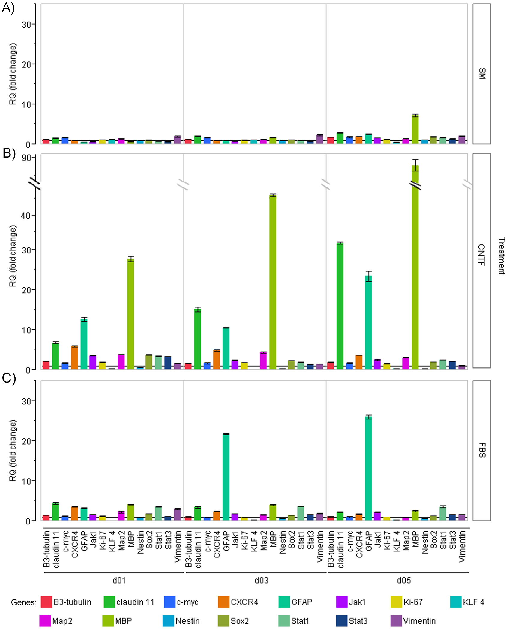 0. Samples were run in triplicate and both CNTF and FBS