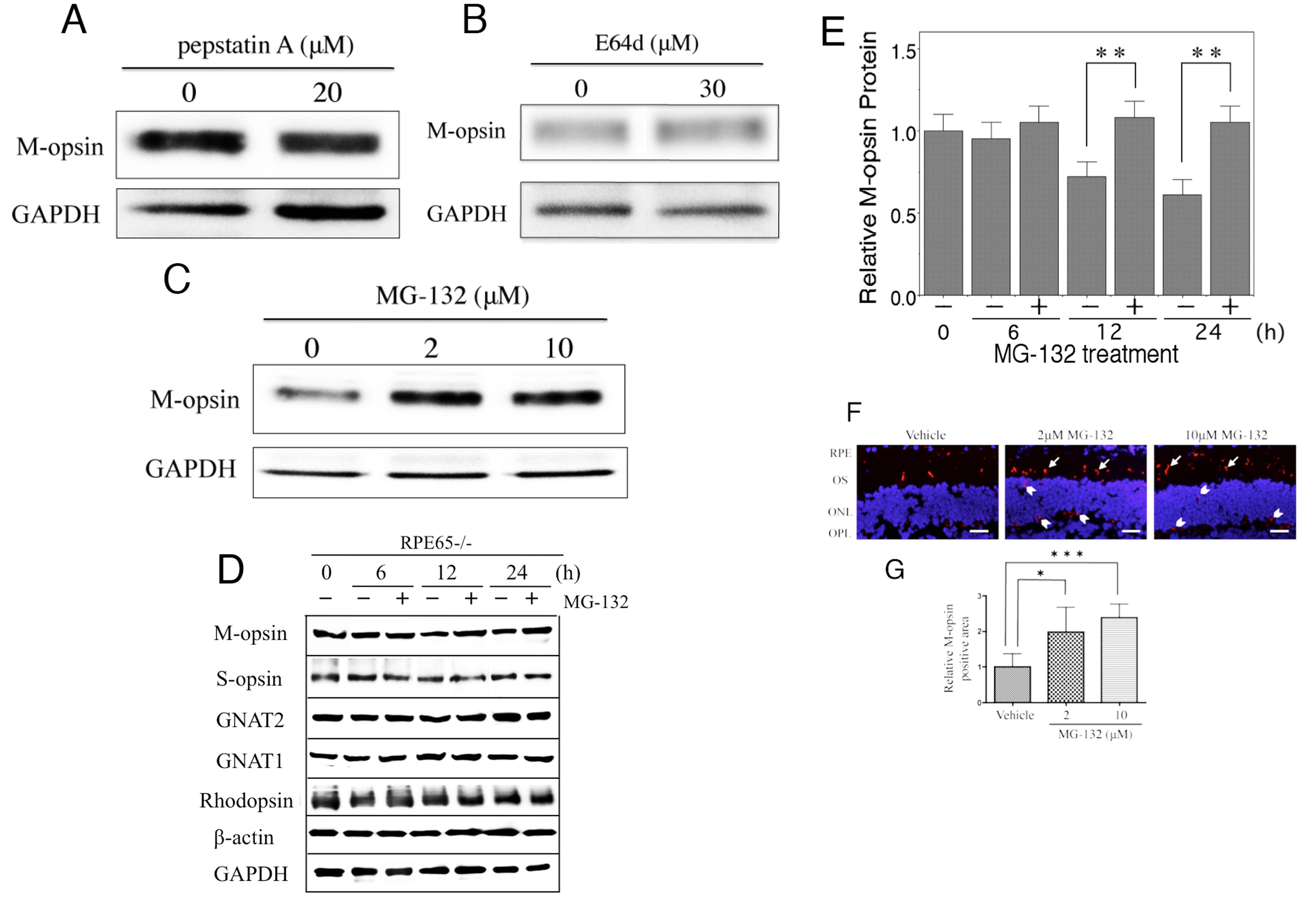 MG-132. D: Effect of MG-132 on M-opsin, S-opsin, GNAT2,