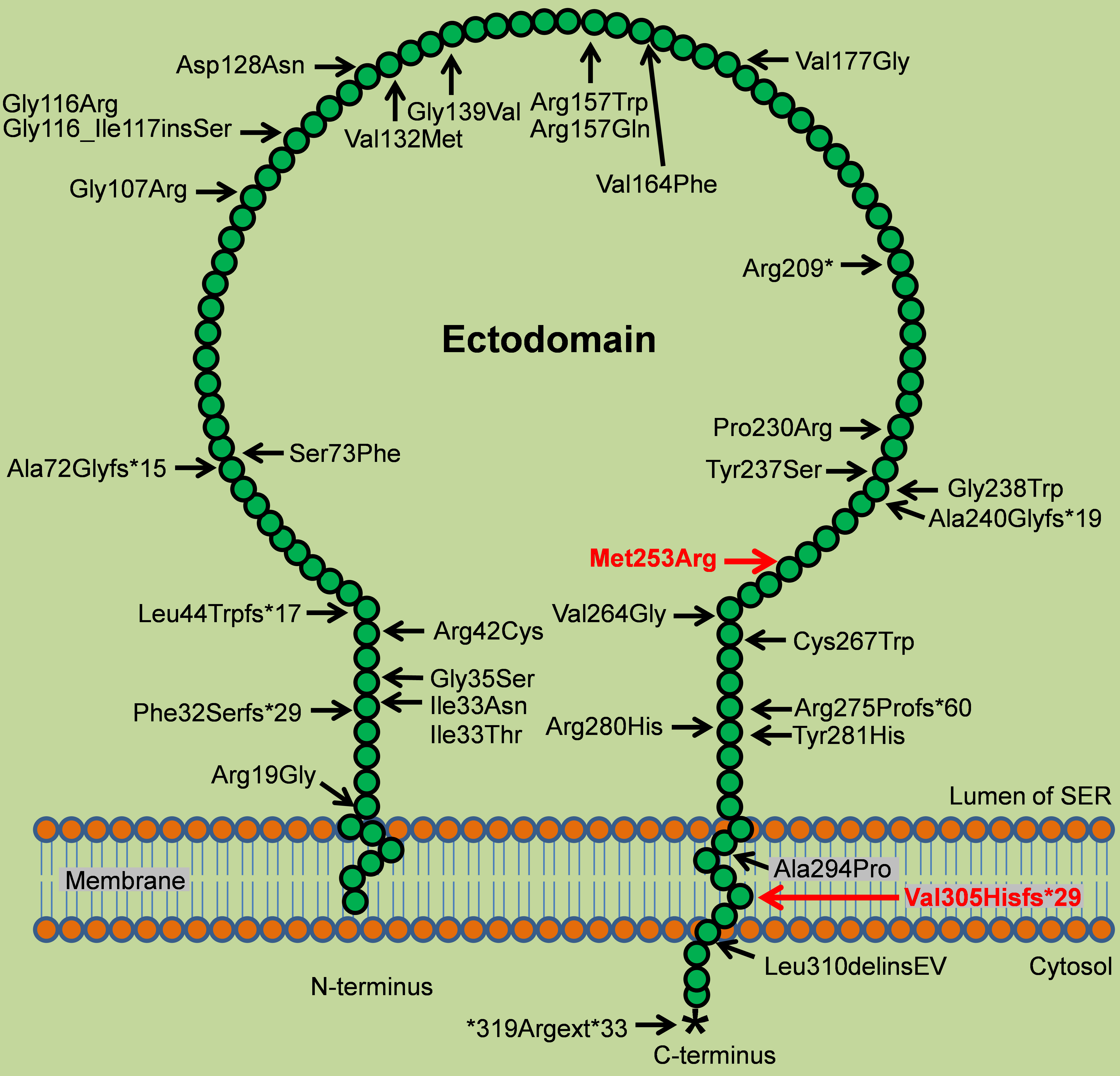 encompasses amino acids 289–310, and a small cytosolic tail of
