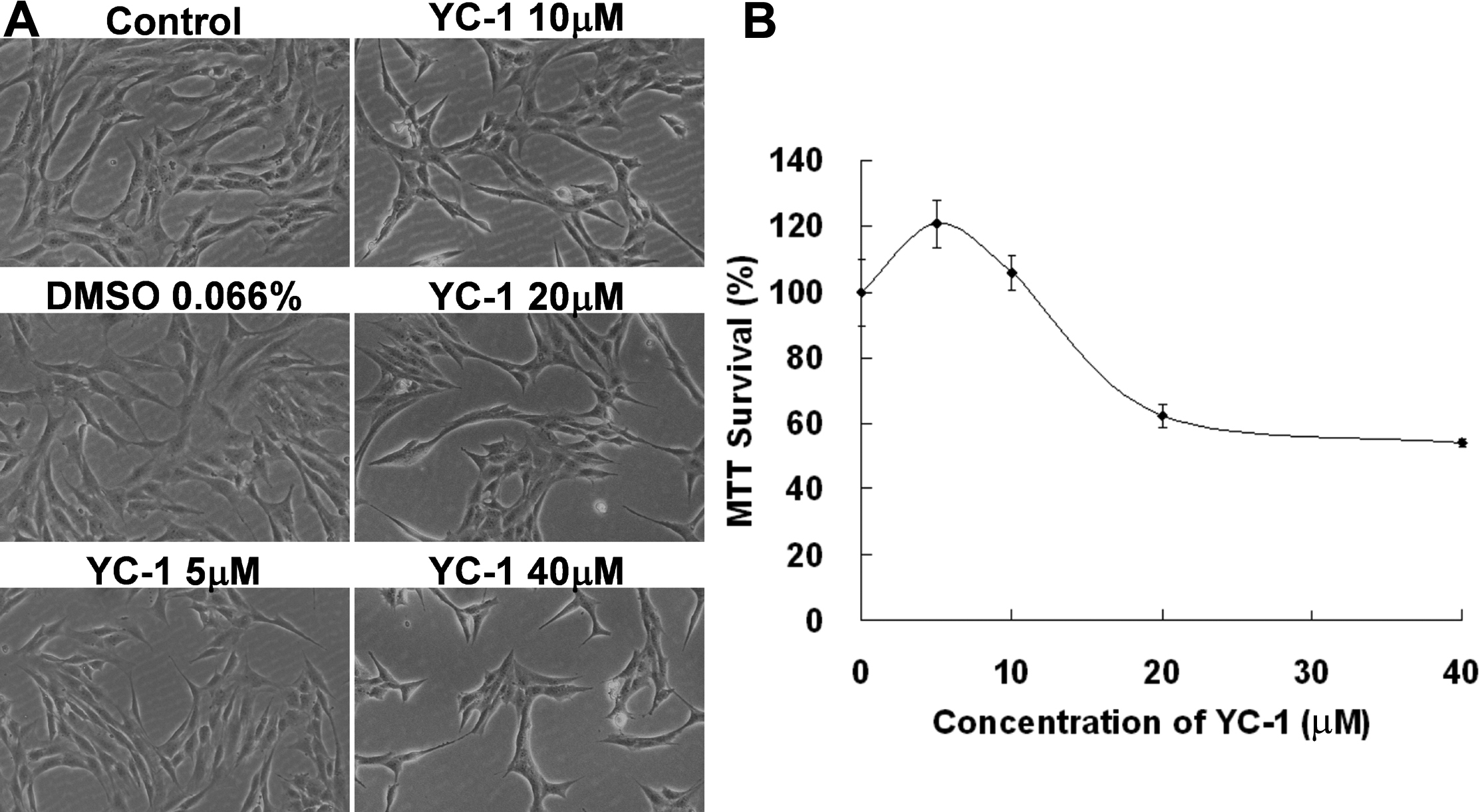 were exposed to 5, 10, 20, and 40 µM YC-1 and 0.066% DMSO for 24