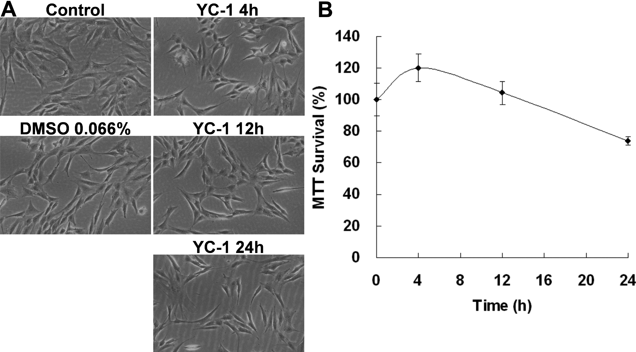 A: RGC-5 cells were exposed to 20 µM YC-1 for 4, 12, and
