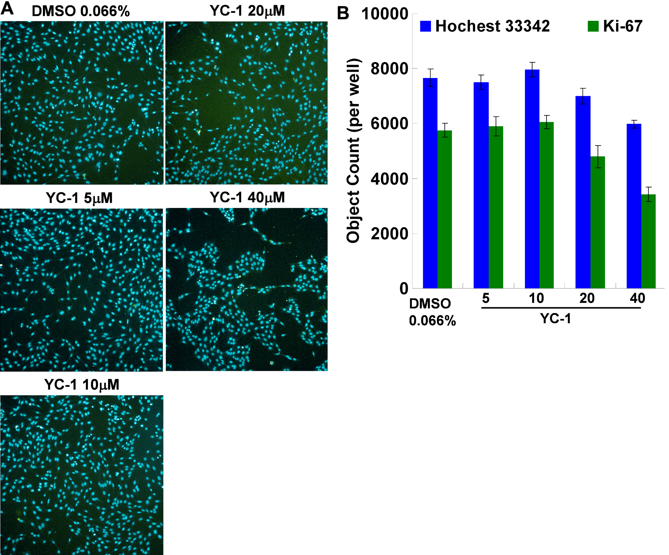 proliferation. A: YC-1 decreased the number of nuclei