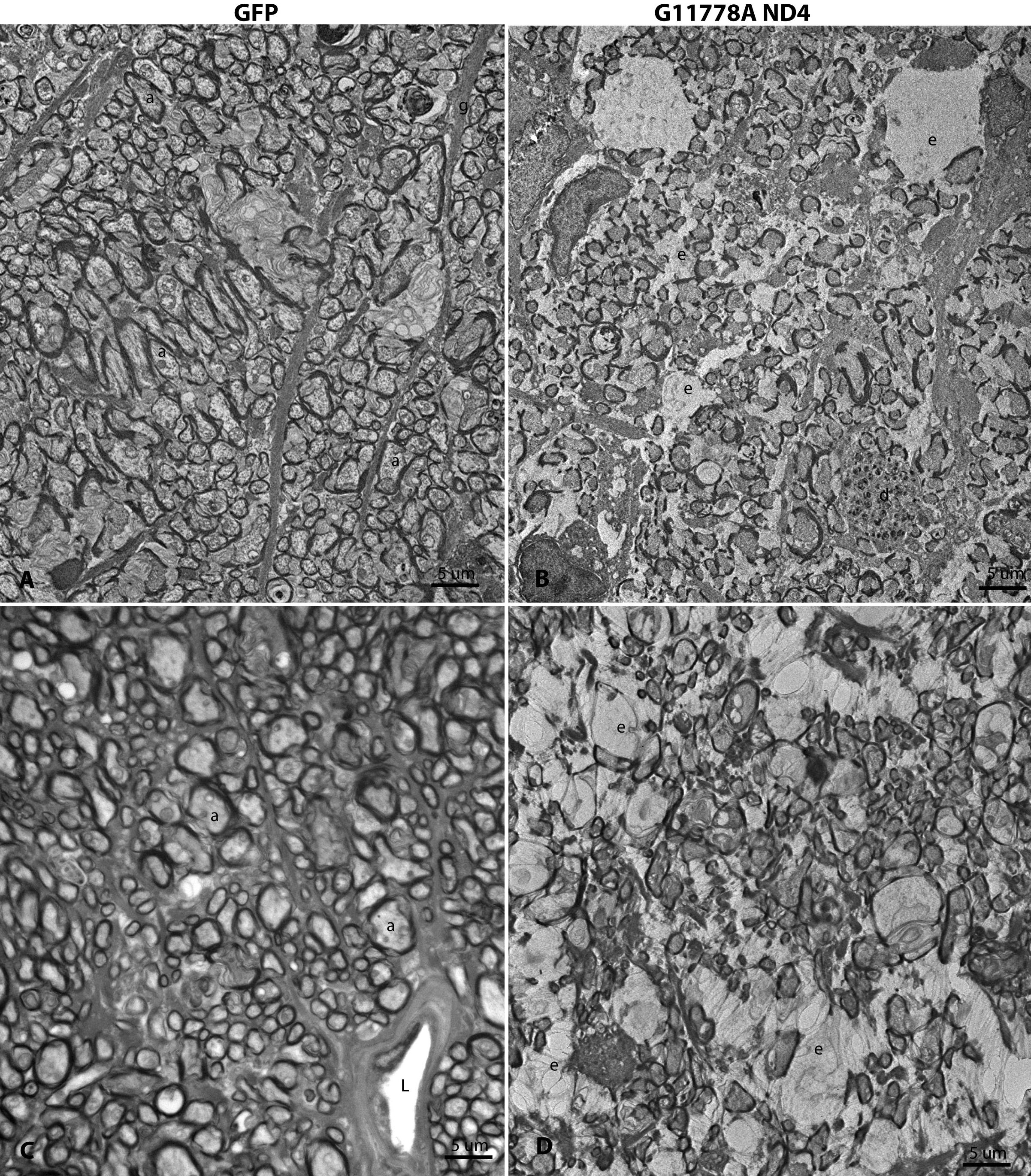 were lost. a=optic nerve axon, e=empty space, g=astroglial
