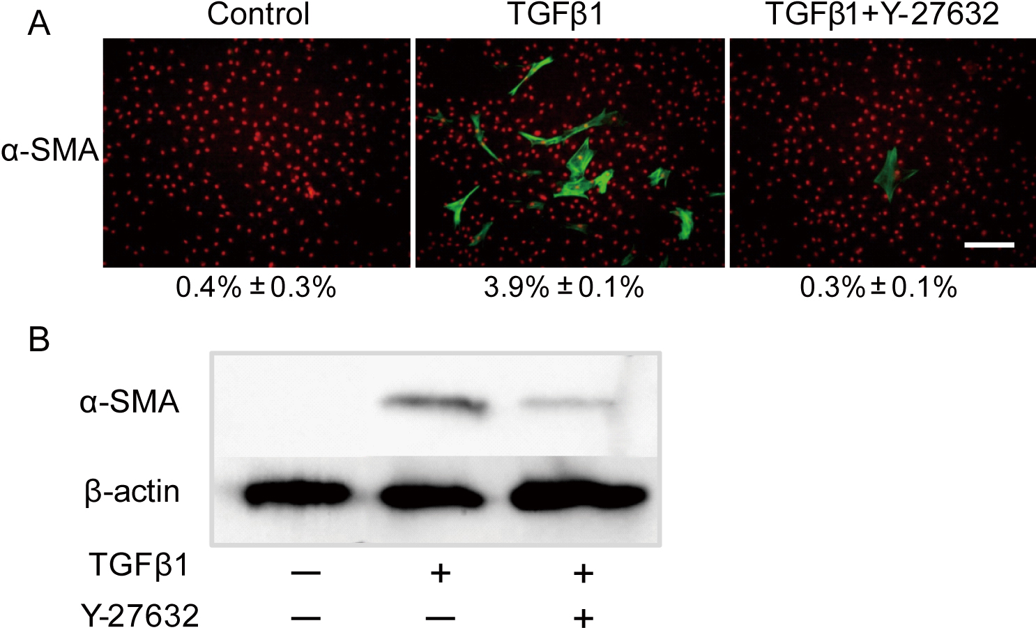 cells treated with TGFβ1 and Y-27632 (p<0.01, Student’s t-test).