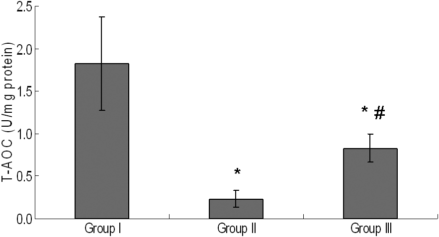 Figure 2. T-AOC in the lens of experimental groups. Group I: Control. Group II: Selenite-supplemented. Group III: Selenite-supplemented