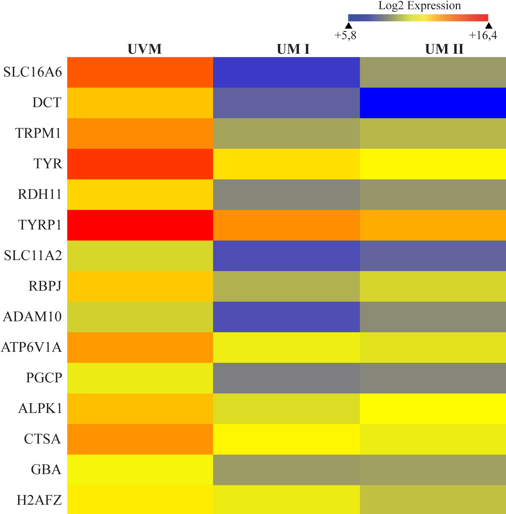 I) or bad prognosis (UM II). The color scale above the heat map