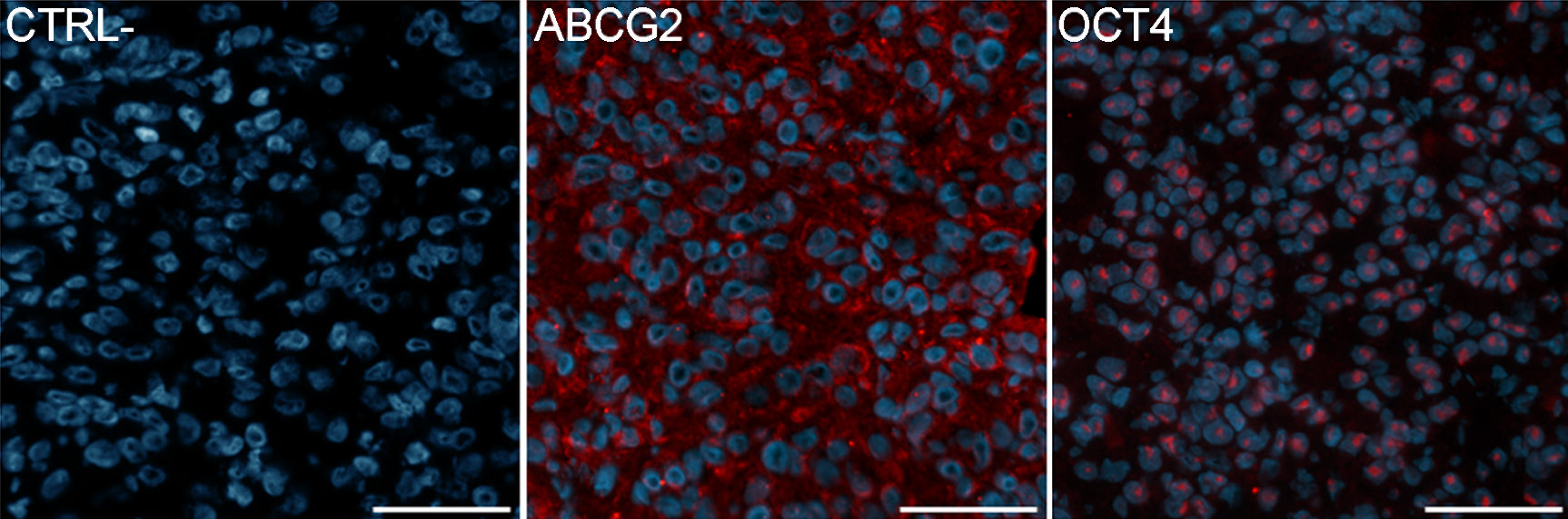 markers in UM. ABCG2 (middle panel) and OCT4 (right panel)