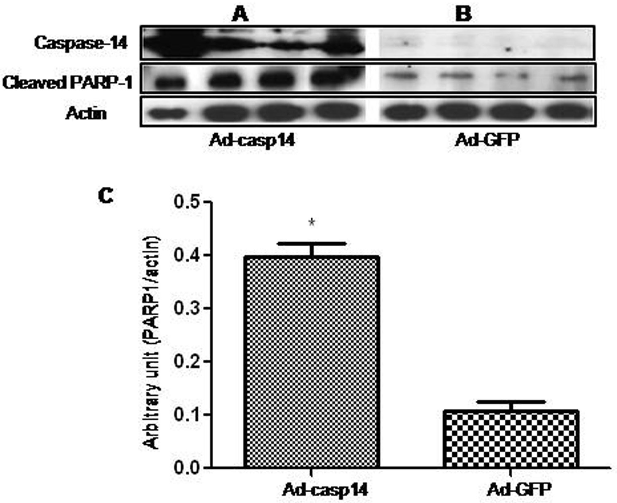 caspase-14 in Ad-casp14 compared to the Ad-GFP. Please note that
