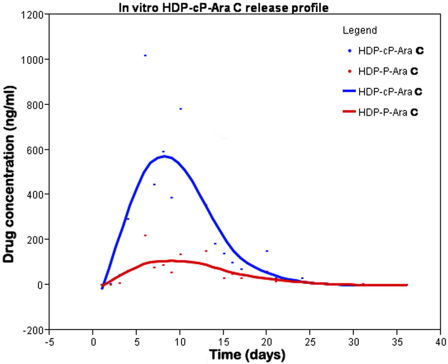 profile. HDP-cP-Ara-C had a peak release around day 10, and the