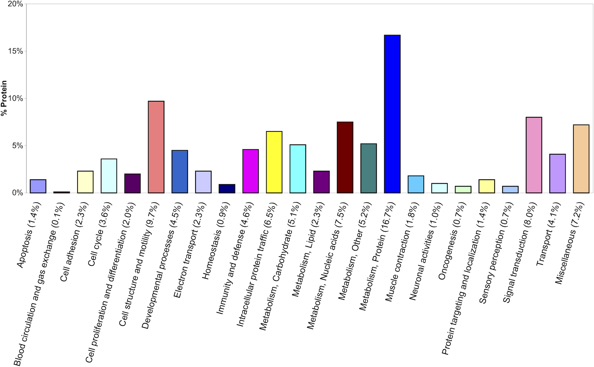Biologic functions of TM proteins. Functional analysis of the 718 proteins quantified in human TM cells was performed using the