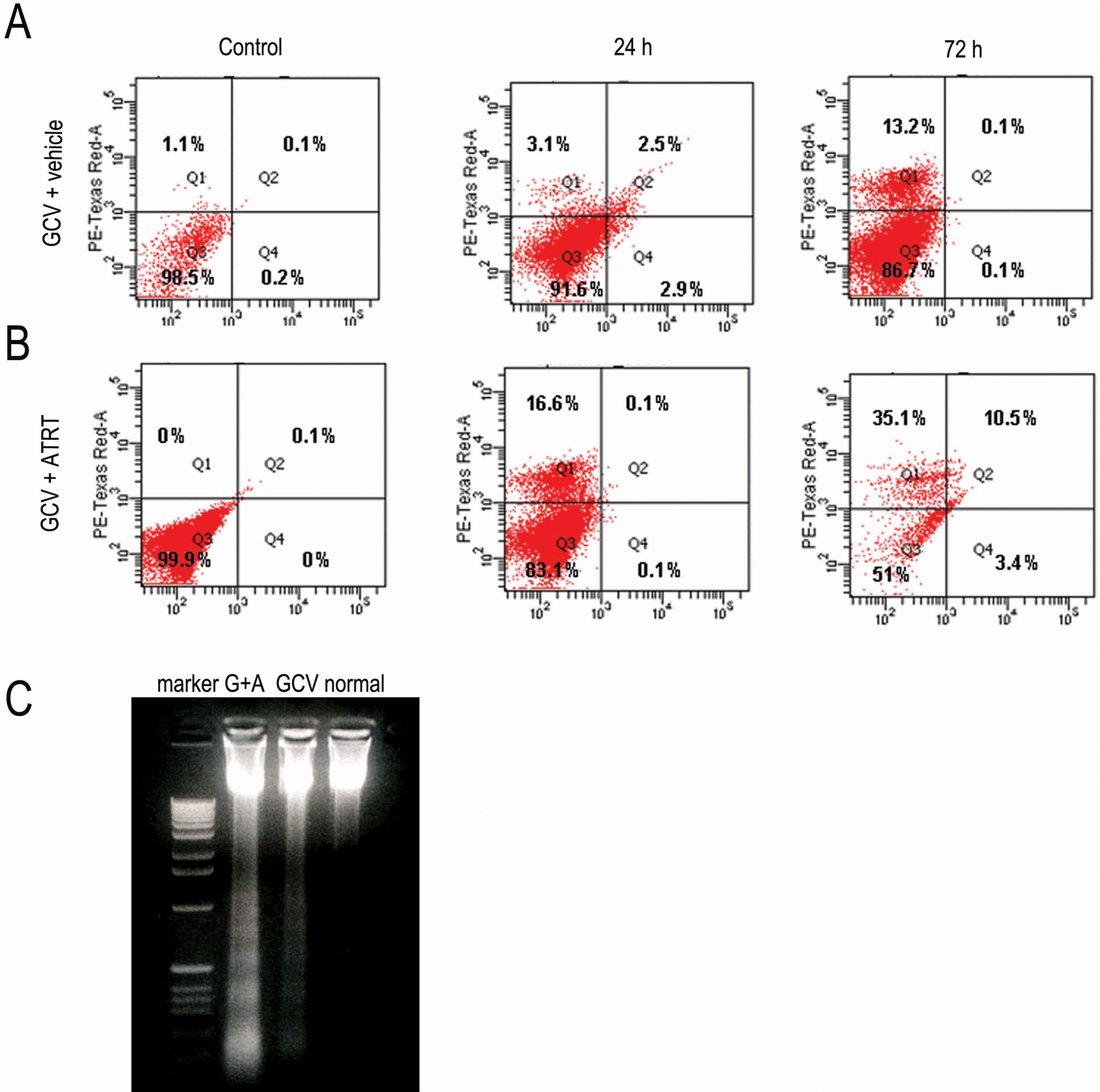 with ATRA with DNA ladder assay. G + A, Lenti-LEP503-HSV-tk/GCV