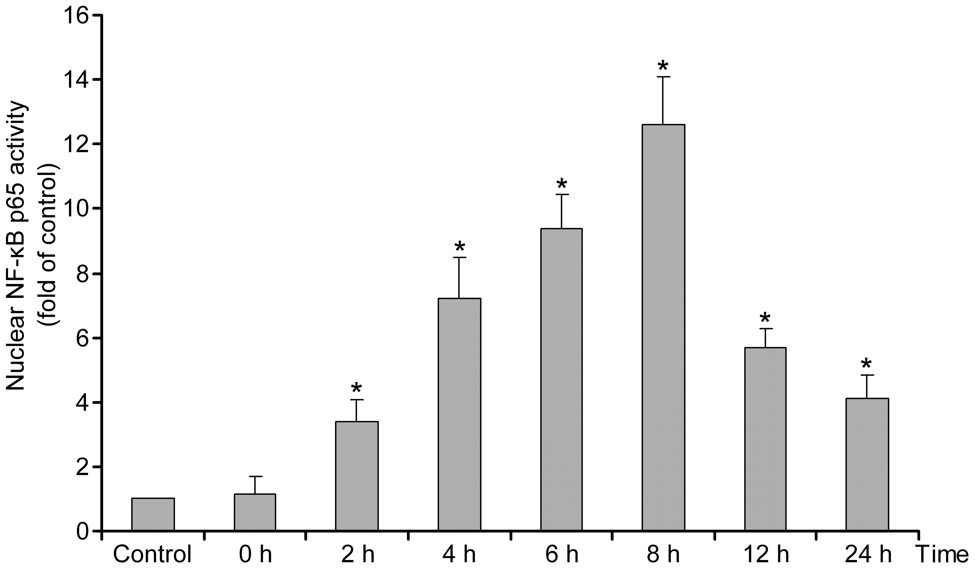 h, 4 h, and 8 h. Afterward, the level of NF-κB decreased but