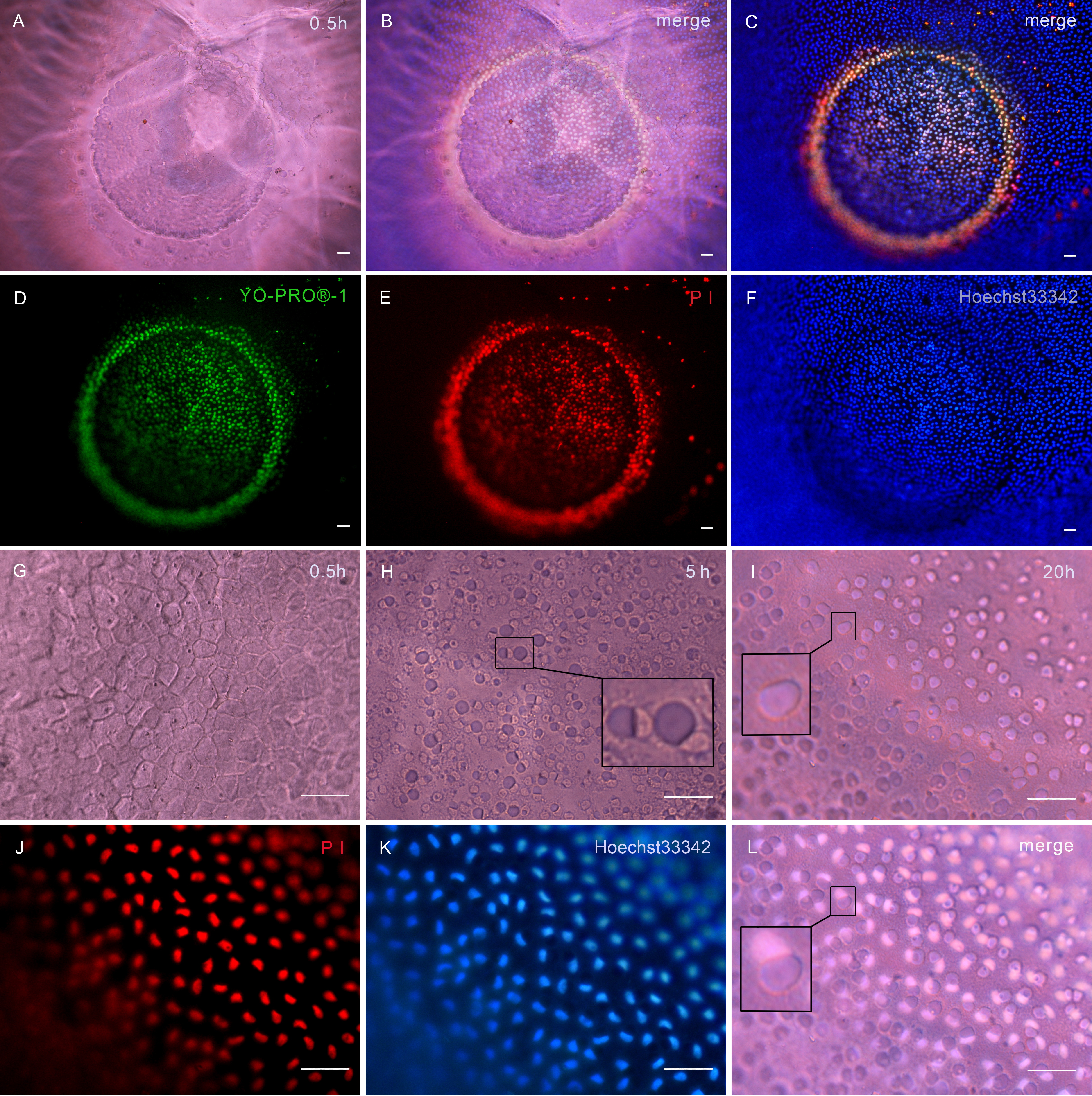 Blue-fluorescent Hoechst 33342 stained the condensed chromatin