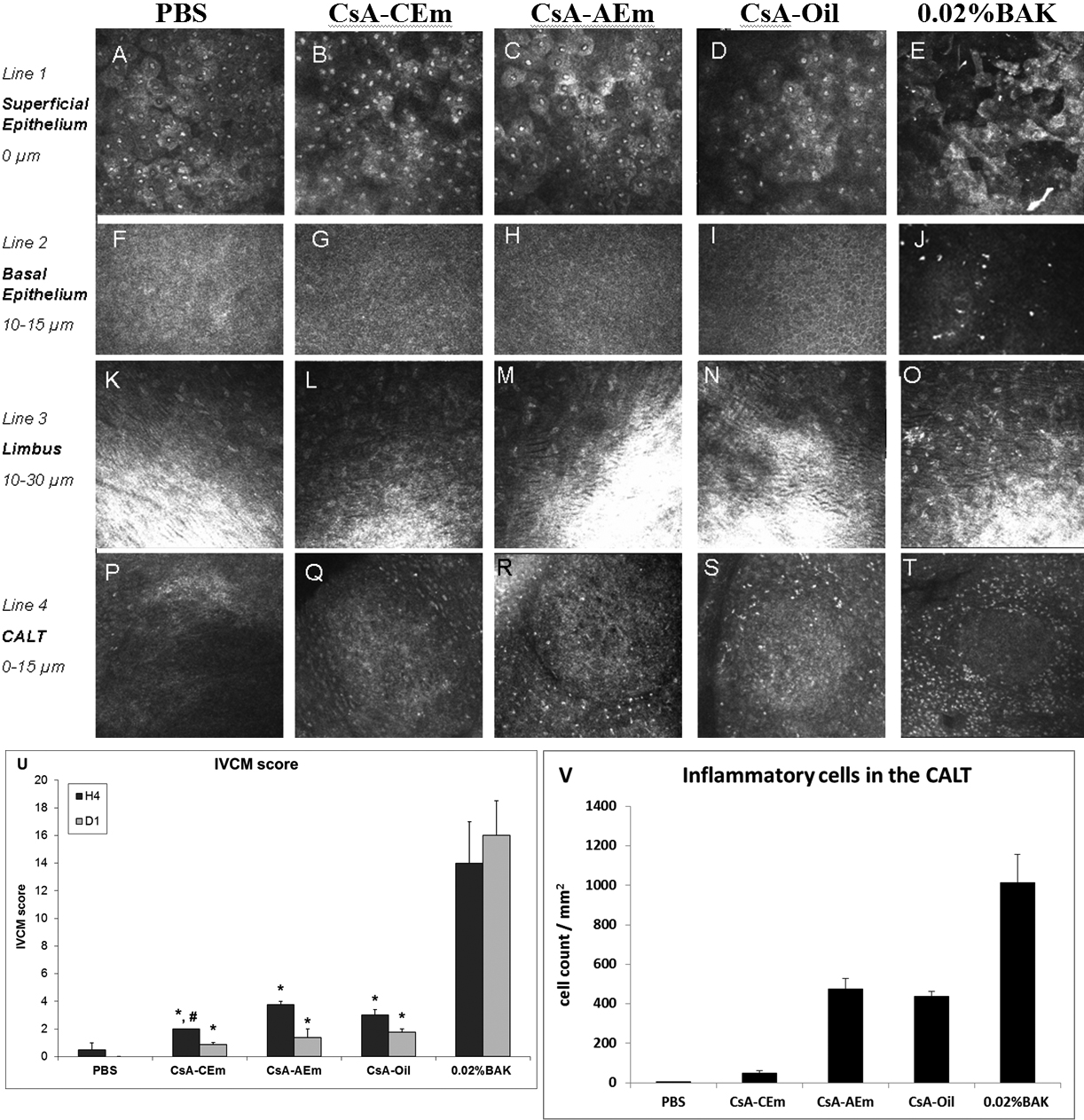 2), CsA-AEm (column 3), CsA-oil (column 4), and 0.02%BAK (column
