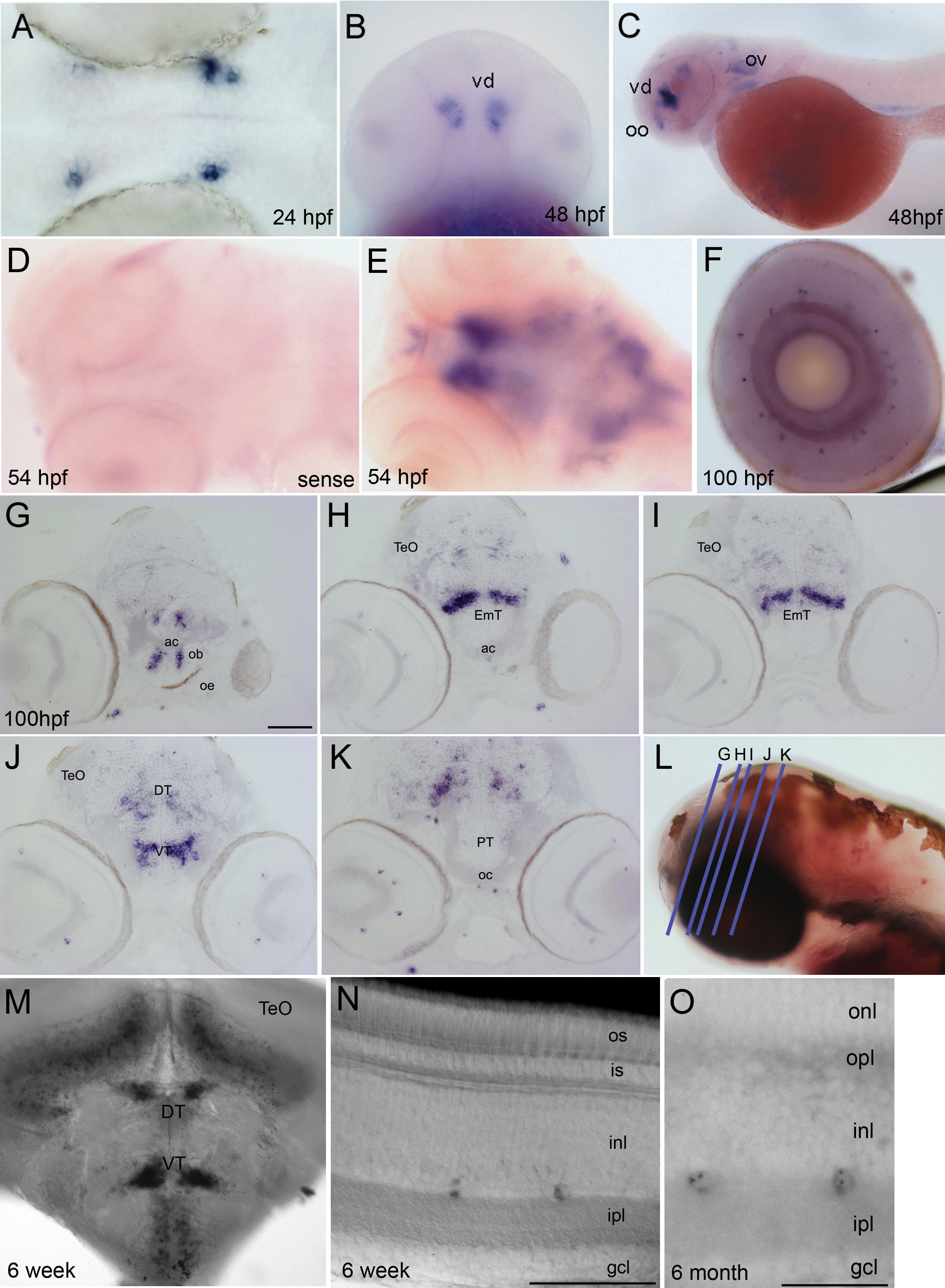 wpf and 6 months postfertilization (mpf), retinal labeling is