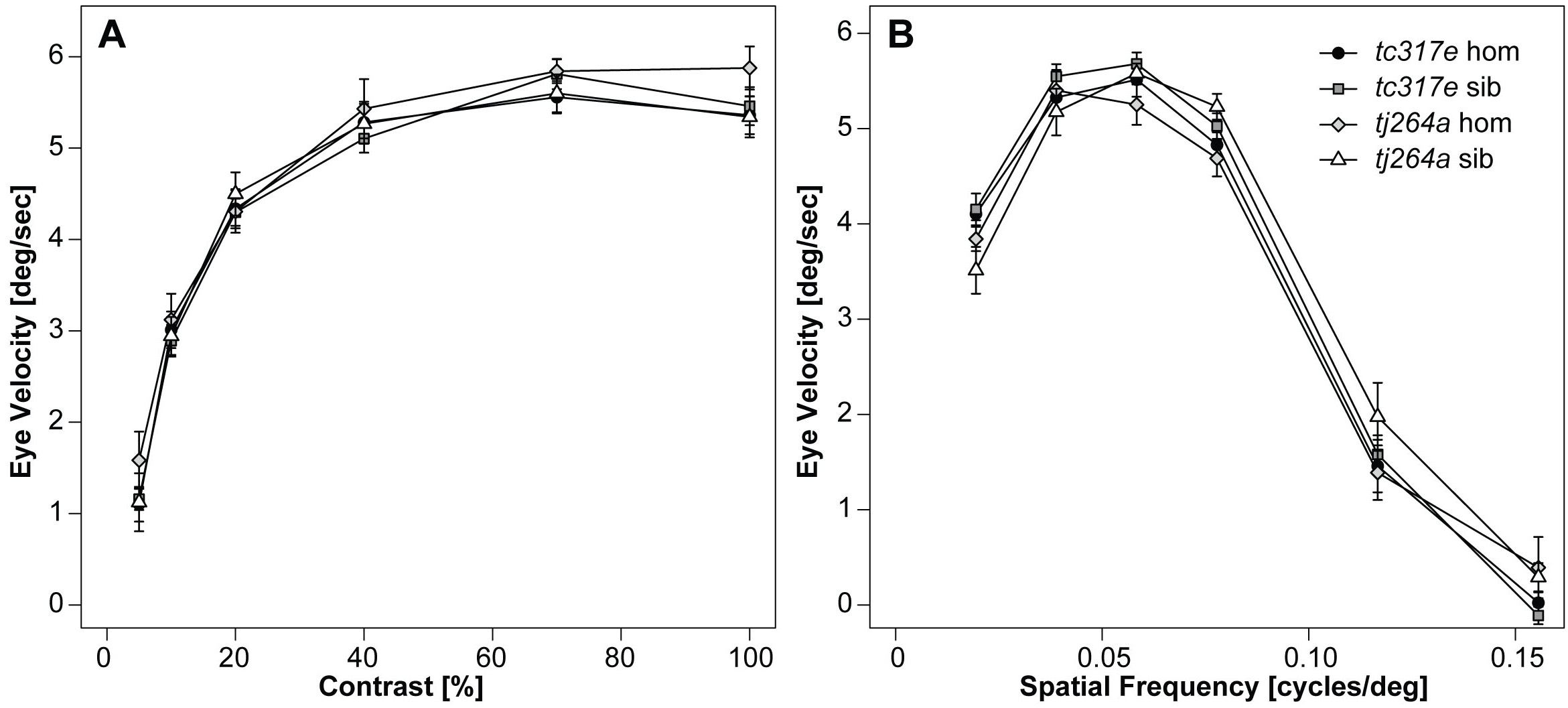 eyes measured under varying contrast (A) and spatial