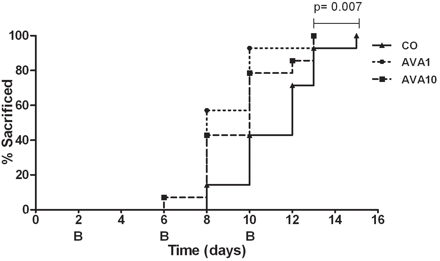 compared to the control group (AVA1 versus control p=0.007, and